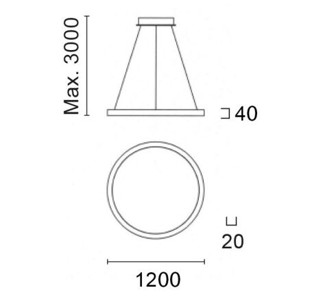 SUDR, Ringförmige Decken-/Pendelleuchte, LED 92W, 2700K, TRIAC Dimmung, Ausstrahlwinkel 110°, UGR 90, Ø1200mm, direkt/indirekt, Abhängung ca. 3m, 2x1050mA=2100mA