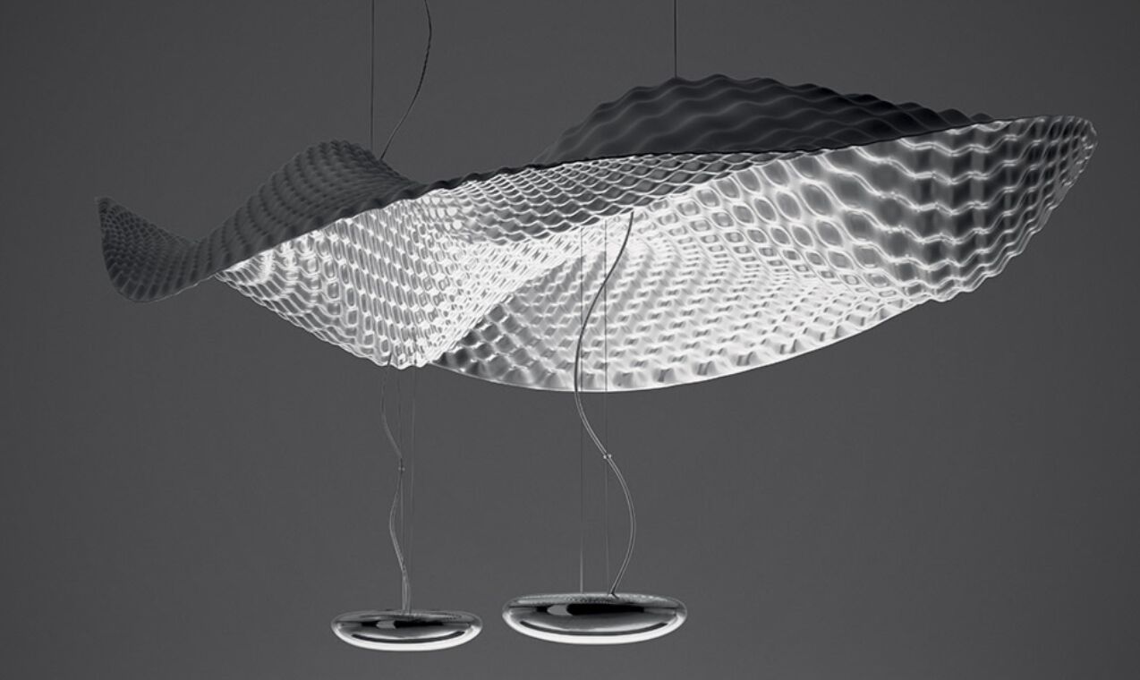 Dieses Konzept basiert auf der Idee den Moment festzuhalten, in dem Luft ein dünnes Blatt Papier streift und dadurch einen natürlichen Fließprozess und Rhythmus erzeugt, der eine skulpturale Leichtigkeit vermittelt. Letztendlich erscheint es wie ein Luftkissen, dass gegen die Schwerkraft schwebt … wie im All wo scheinbar komplexe Formen und Geometrien ein Gefühl von Unendlichkeit erzeugen.