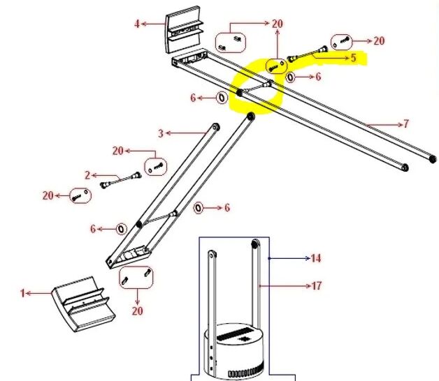 Artemide Ersatzteile TIZIO 35 oberer Verbindungssteg (kuz) 60mm rot- (chrom)