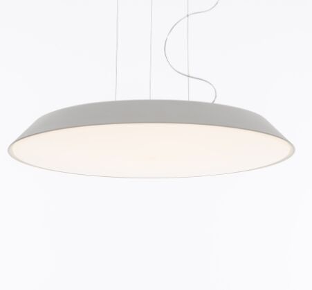 Die Kollektion umfasst eine Pendelleuchte und eine Wand- und Deckenleuchte. Beide Typen verwenden den gleichen breiten und flachen, runden Korpus aus Polycarbonat und Methacylat, mit einem breiten Diffusor und abgeschrägten Kanten, dank denen die Wand- und Deckenleuchte vor der Wand zu schweben scheint, und auch die Pendeleuchte eine besonders leichte, schwebende Note erhält.