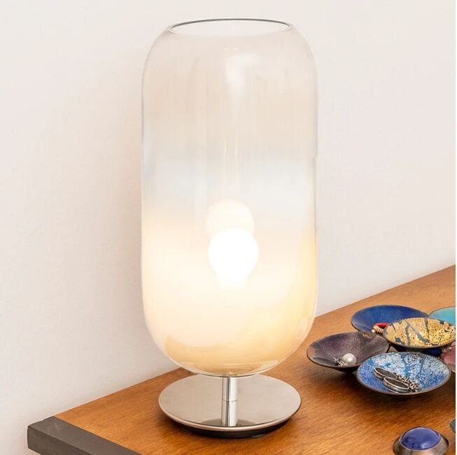 Die mundgeblasene Gople Mini Table aus dem italienischen Traditionshaus Artemide ist nicht nur aufgrund ihres hochwertigen Materials eine ganz besondere Tischleuchte. Denn ihr wunderschönes Licht wirkt nicht nur besonders wohltuend auf Menschen, hinzu kommt dann noch das zauberhaft schlichte Design der Gople Mini Table, die sich im privaten Bereich ebenso gut macht wie in gewerblichen Räumen