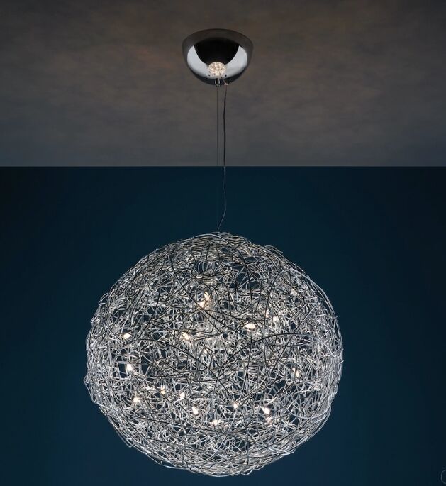 Fil de Fer ist eine Leuchte aus modelliertem und geflochtenem Aluminiumdraht, die im Innern von winzigen Lämpchen erhellt wird. Von Enzo Catellani ausgedacht und entworfen, ist sie seine liebste Schöpfung. Sie entstand vor fast 20 Jahren für einen speziellen Auftrag, wurde dann aber für das ursprüngliche Projekt nicht verwendet und blieb in seiner Werkstatt hängen. Jeden, der sie in eingeschaltetem Zustand sah, verzauberte sie durch etwas Besonderes und Magisches. Enzo Catellani beschließt also, an der Leuchte weiterzuarbeiten. Die Lampe kommt auf den Markt und wird zum repräsentativsten Modell von Catellani & Smith.