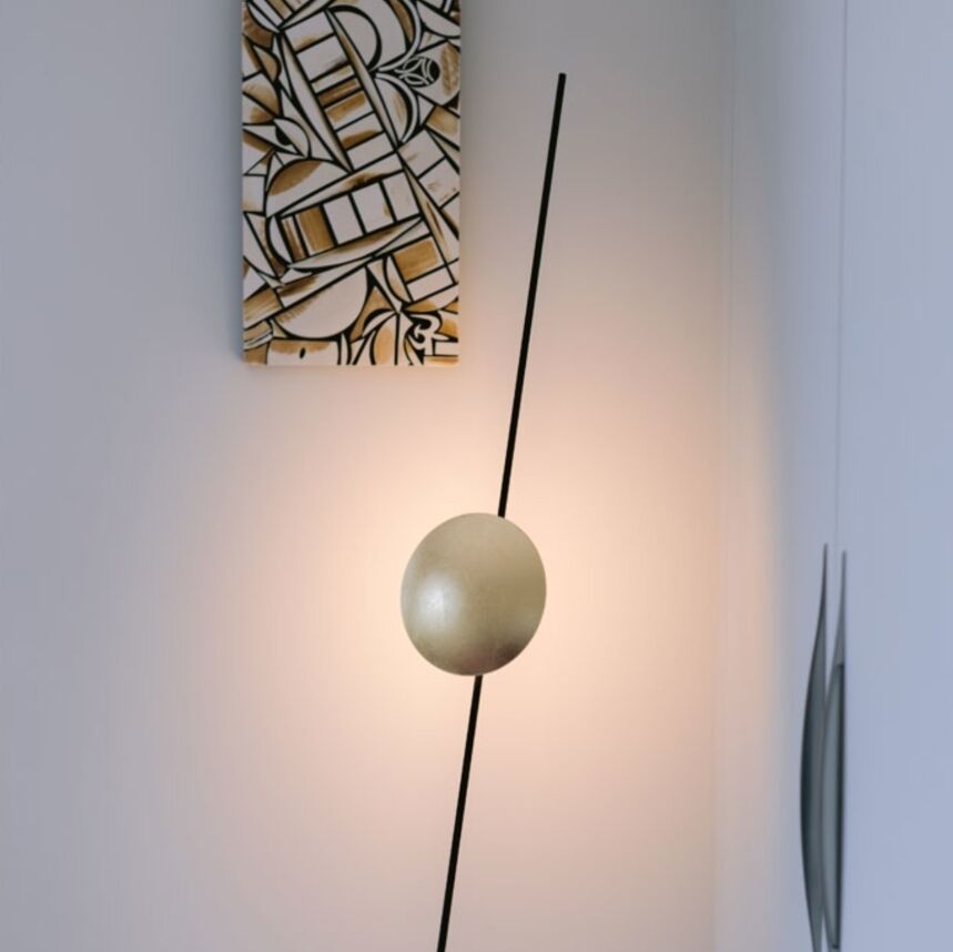 Lederam steht für die strenge Geste einer Linie, während die Scheiben mit ihren warmen, weichen Farbtönen ein extrem flaches LED-Modul umschließen, das es erlaubt, grazile Lampen und schwebende Formen mit Kurven und geschmeidigen Linien zu kreieren.