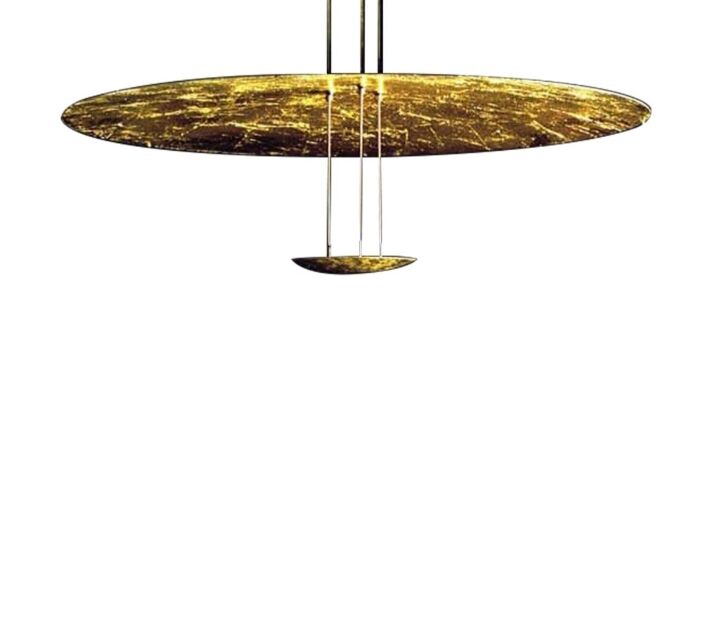 Macchina della Luce geht aus der Kollektion Luci d’Oro hervor und ist ebenfalls das Resultat von Betrachtungen über die Farbe des Lichts: das goldene Licht der Sonne, des Feuers; warme Lichter, bei denen das Konzept der Lichtbrechung im Kopf Enzo Catellanis Form annimmt und später noch oft andere Schöpfungen hervorbringt.
