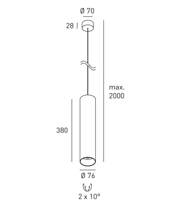 Hängeleuchte 230 V, Gehäuse aus Aluminium, schwenkbar (2 x 10°), mit tiefer gesetztem Leuchtmittel, schwarzes Stoffkabel kürzbar, Entblendungsring wahlweise gold oder schwarz, für LED-Leuchtmittel geeignet