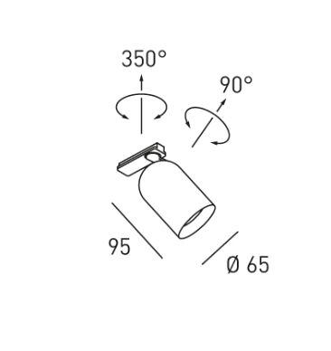 Strahler für 1‑Phasen Stromschienen, 230 V, mit tiefer gesetztem Leuchtmittel, dreh- und schwenkbar (350°/90°), Gehäuse aus Aluminium, für LED‑Leuchtmittel geeignet (Leuchtmittellänge: max. 54 mm), Entblendungsring schwarz, mit Global 1‑Phasenadapter