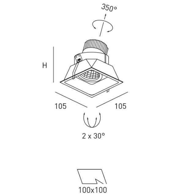 DLS CREDO Einbau 105x105mm schwb.30° Fassung Gu10 (Weiß)