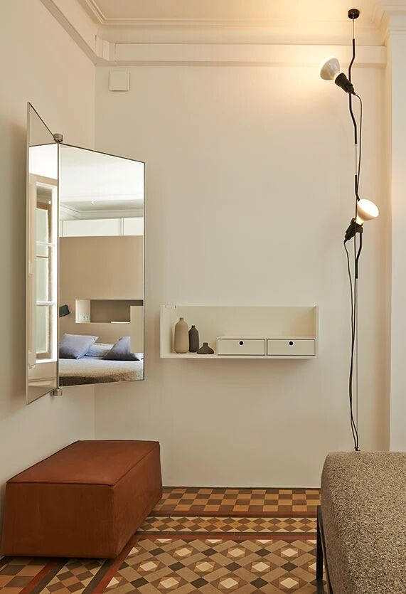Die dimmbare Flos PARENTESI D Boden-Deckendrahtseilleuchte ist ein prämierter Designklassiker