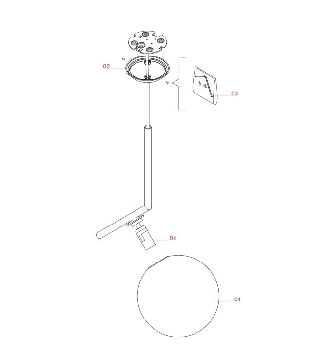 FLOS Ersatzteile Ersatzglas IC 1 D=200mm Opalglas gläzend / Metall (Weiß-Chrom Nr. 1)