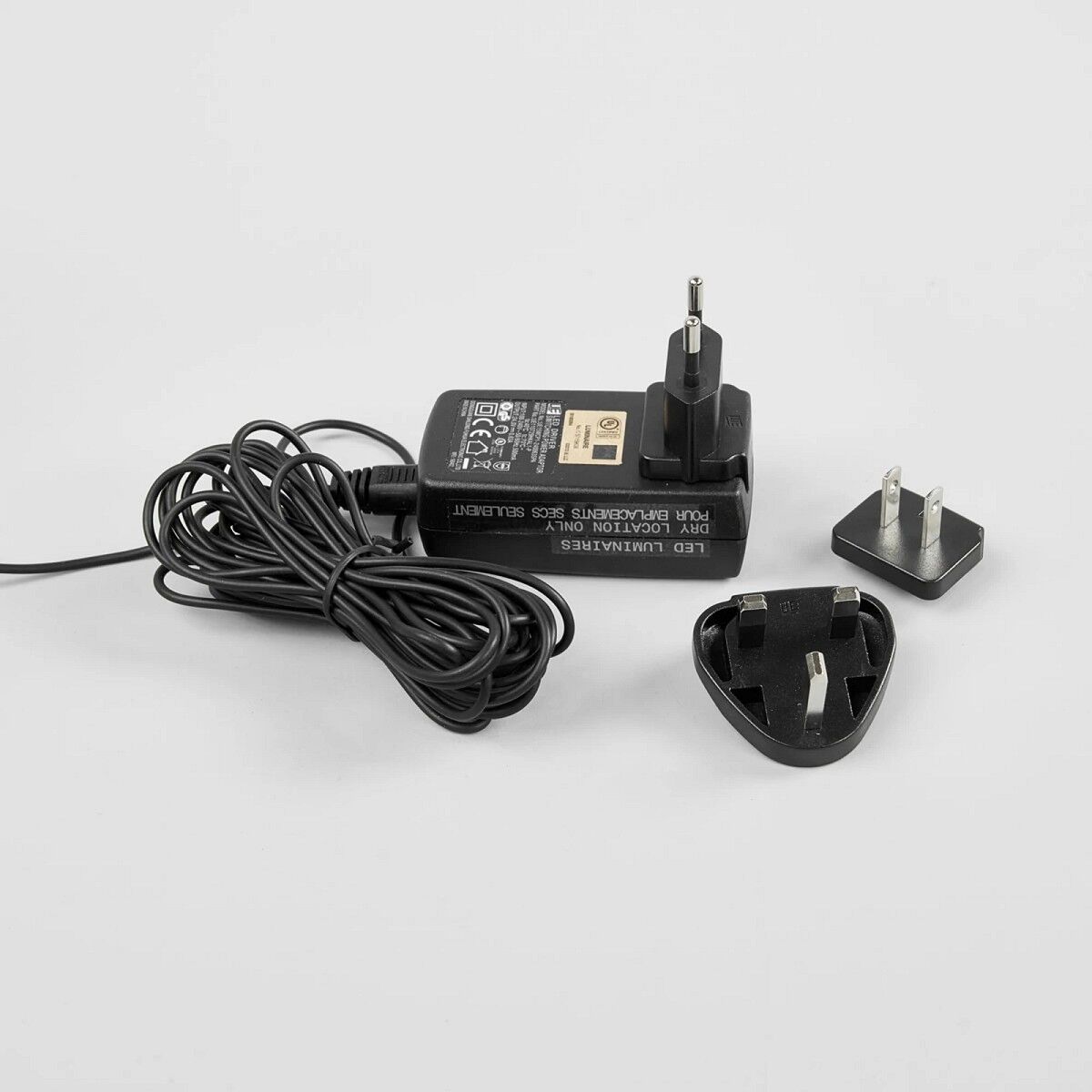 Leuchte mit direktem Licht. Kopfteil aus spritzgegossenem Aluminium, glänzend lackiert oder verchromt. Korpus aus spritzgegossenem PA66+30%FV mit Schicht aus fließgepresstem Aluminium, glänzend lackiert oder verchromt. Schwenkkopf. Die vertikale Bewegung der Leuchte erfolgt ber den Lauf der inneren Struktur des Korpus in der Öffnung aus Stahl zwischen Decke und Boden (Nutzlänge 4.000 mm). Dimmbar Schalter mit Soft-Touch-Technologie. Netzgerät mit Stecker und austauschbarem Anschluss.