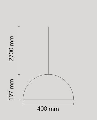 Hängeleuchte für diffuses Licht. Kuppel, innen aus weißem Gips und mit äußeren Oberflächen in folgenden Farben: Rost, Schwarz glänzend, Weiß glänzend oder Mattgold. Kuppelträger aus Aluminiumlegierung. Diffusor aus opalem, geblasenem Glas. Fotogravierte und tiefgezogene Verzierung aus Edelstahl. Rosette aus PC in der gleichen Farbe wie die Kuppel.