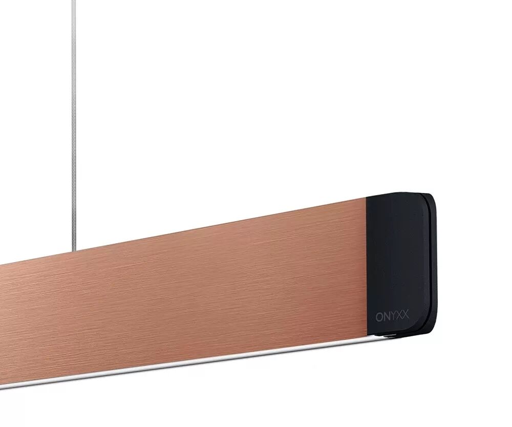 Die Onyxx Linea Pro LED-Pendelleuchte vom bayerischen Premiumleuchten-Hersteller Grimmeisen Licht ist eine revolutionäre High-End Hängelampe mit neuester Technologie für maximalen Komfort und bietet individuelle Gestaltungsmöglichkeiten. Extrem schlank im Profil fasziniert das hochwertige Alu-Leuchtenpendel auf Anhieb und überrascht trotz minimalistischem Design mit großartiger Multifunktionalität. Jeweils an Ober- und Unterseite mit leistungsstarker LED bestückt, gibt die Onyxx Linea Pro LED-Pendelleuchte von Grimmeisen ihr intensives Licht schön gleichmäßig und blendfrei durch die Acrylglasdiffusoren ab, wobei ein Großteil nach unten abstrahlt. Beides lässt sich gleichzeitig aber auch getrennt voneinander schalten. Die konkav geformten Endkappen in schwarzer oder silberner Farbe beinhalten einen innovativen Sensor und ein Bluetooth-Modul, sodass die Leuchte nicht nur kontaktlos per Handgeste geschaltet und in der Intensität gedimmt, sondern auch in 5 Stufen in der Farbtemperatur von wohlig warmen 2200 Kelvin bis zu kühlen 5000 Kelvin nach Belieben reguliert werden kann. Zusätzlich ermöglicht die BlueControl Steuerung eine komfortable Bedienung via Casambi App über das Smartphone, Tablet oder Smartwatch und die stufenlose Einstellung der Lichtfarbe. So haben Sie mit der Onyxx Linea Pro LED-Pendelleuchte von Grimmeisen Licht für jede Situation die perfekte Beleuchtung, egal ob zum konzentrierten Arbeiten am Tag oder zum Genießen am Abend. An den Außenseiten sitzen magnetisch befestigt wandelbare Stylecover, welche in vielen attraktiven Oberflächen wie z. Bsp. Naturstein, Holz oder Leder auswählbar sind und viel Spielraum zur Kreativität lassen für den eigenen Look. Zudem ist die Leuchte dank unsichtbarer Höhenverstellung schnell und unkompliziert an die jeweilige Raumhöhe anpassbar. Bestens eignet sich die Onyxx Linea Pro LED-Pendelleuchte von Grimmeisen Licht für den Einsatz über dem Büro- oder Esstisch und macht sich toll über einer Kochinsel.