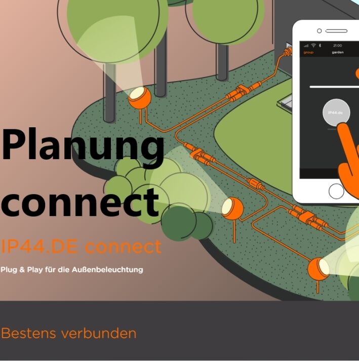 Mit IP44.DE connect lassen sich all unsere ortsveränderlichen LED-Außenleuchten anschließen, und zwar einfacher und schneller als je zuvor. Eine aufwändige Verlegung von Erdkabeln, Vorinstallationen und teure Montagen entfallen. Alles lässt sich eigenhändig installieren - auf Handwerkerunterstützung kann verzichtet werden!