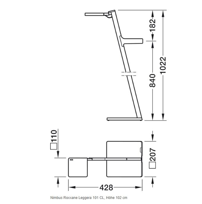 Länge 428,00 mm Breite 207,00 mm Höhe 1.022,00 mm