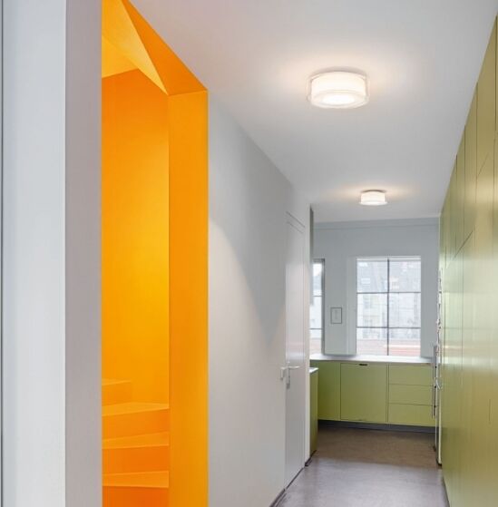 CURLING Ceiling zeigt, was eine Deckenleuchte heute bieten kann, und hält sich dabei nicht an konventionelle Produktkategorien. Von der Einzelleuchte im privaten Raum bis hin zur Reihung in Fluren, Eingangsbereichen und Zimmerfluchten steht CURLING Ceiling für nachhaltige, wartungsfreie Technik und brillantes Licht. Wählen Sie Ihre Variante für Ihren speziellen Einsatzbereich: Je nach Version kombiniert CURLING Ceiling nach unten gerichtetes Direktlicht mit sanftem Rundumlicht oder mit direkt abstrahlendem Rundumlicht. Praktisch: Ein standardisiertes Wechselsystem macht es möglich, dass die LED-Einheit am Ende ihrer Lebensdauer einfach ausgetauscht werden kann. Bei einer Brenndauer von durchschnittlich 6 Stunden täglich ist dies erst nach ca. 10 Jahren der Fall.