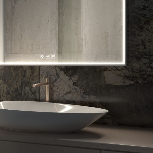 Ein Muss für jedes Badezimmer: Der hochwertige Rahmen aus eloxiertem Aluminium ist in den Farben Silber, Champagner sowie Schwarz erhältlich. Er besticht mit seiner Authentizität und sorgt für ein elegantes und exklusives Design, das sich vielseitig einsetzen lässt. Die rundum integrierte LED Beleuchtung im Rahmen entspricht der neuesten Technik und garantiert eine tageslichtähnliche Farbwiedergabe sowie eine schattenfreie und homogene Ausleuchtung. Als Marktführer im Bereich der Spiegelherstellung versprechen wir Ihnen eine hochwertige Verarbeitung sowie eine Fertigung nach deutscher Spiegelnorm. Auch das Spiegelglas wurde von uns nach höchsten Ansprüchen an Qualität und Effektivität ausgewählt. Wir bieten eine Vielzahl an unterschiedlichen Formaten, auf Anfrage ist jedoch auch ein Wunschmaß möglich. Damit besitzen Sie schon bald einen Spiegel, der Ihren Vorstellungen im vollsten Umfang entspricht.