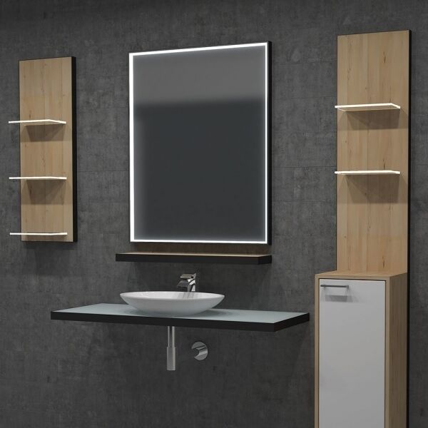 Top Light Lichtspiegel "Lumen Light" LED umlaufend AluRahmen (H=80 B=60 Ohne / schaltbar Schwarz)
