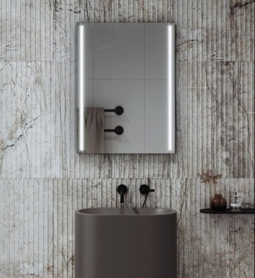 New Line definiert die Ästhetik von Spiegeln neu durch seine edlen, schmalen Lichtstreifen, die ihm einen unvergleichlichen Look verleihen. Mit einer beeindruckenden Lichtleistung von 11 Watt und einer Farbtemperatur von bis zu 3.000 Kelvin setzt dieser Spiegel neue Maßstäbe in der Beleuchtungstechnik. Die hochleistungsfähige LED-Technologie ermöglicht es, auch die ausgefallensten Satinierungsmuster nahezu bis an den Rand zu führen, wodurch nur minimal Spiegelfläche verloren geht und maximale Lichtausbeute ohne Designeinbußen gewährleistet wird. "New Line" besticht durch moderne, zeitlose Eleganz und bietet durch optional erhältliche Lichtsteuerungen individuell anpassbare Lichtverhältnisse für jeden Raum.