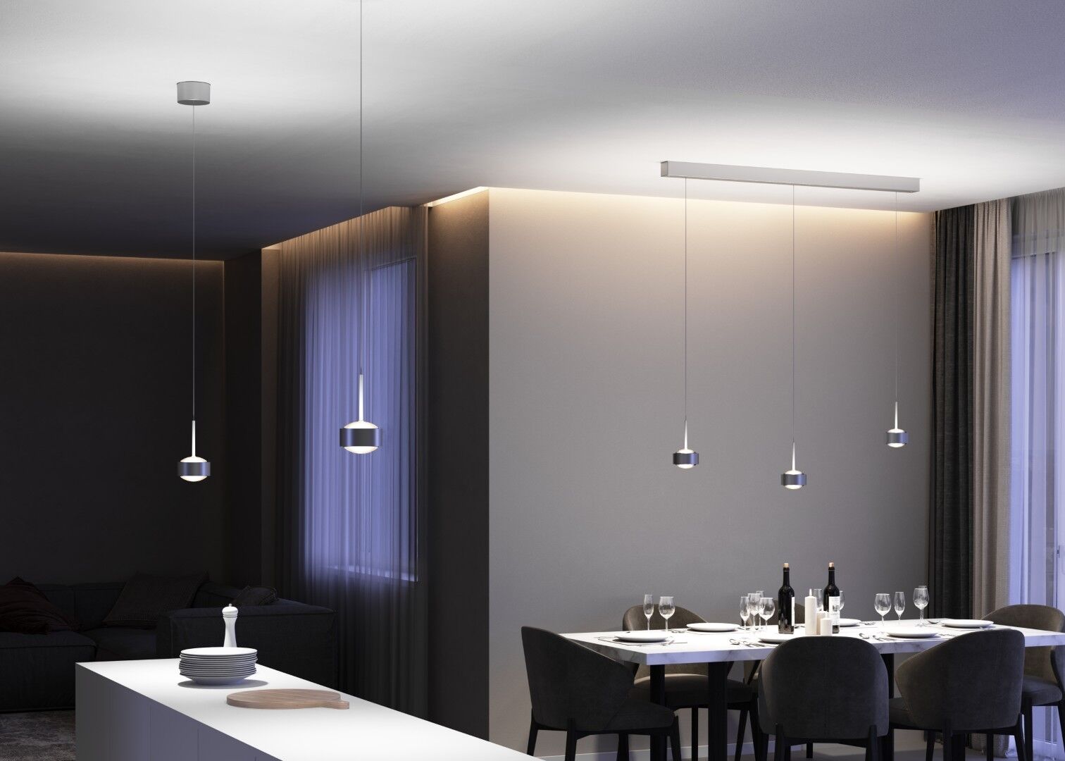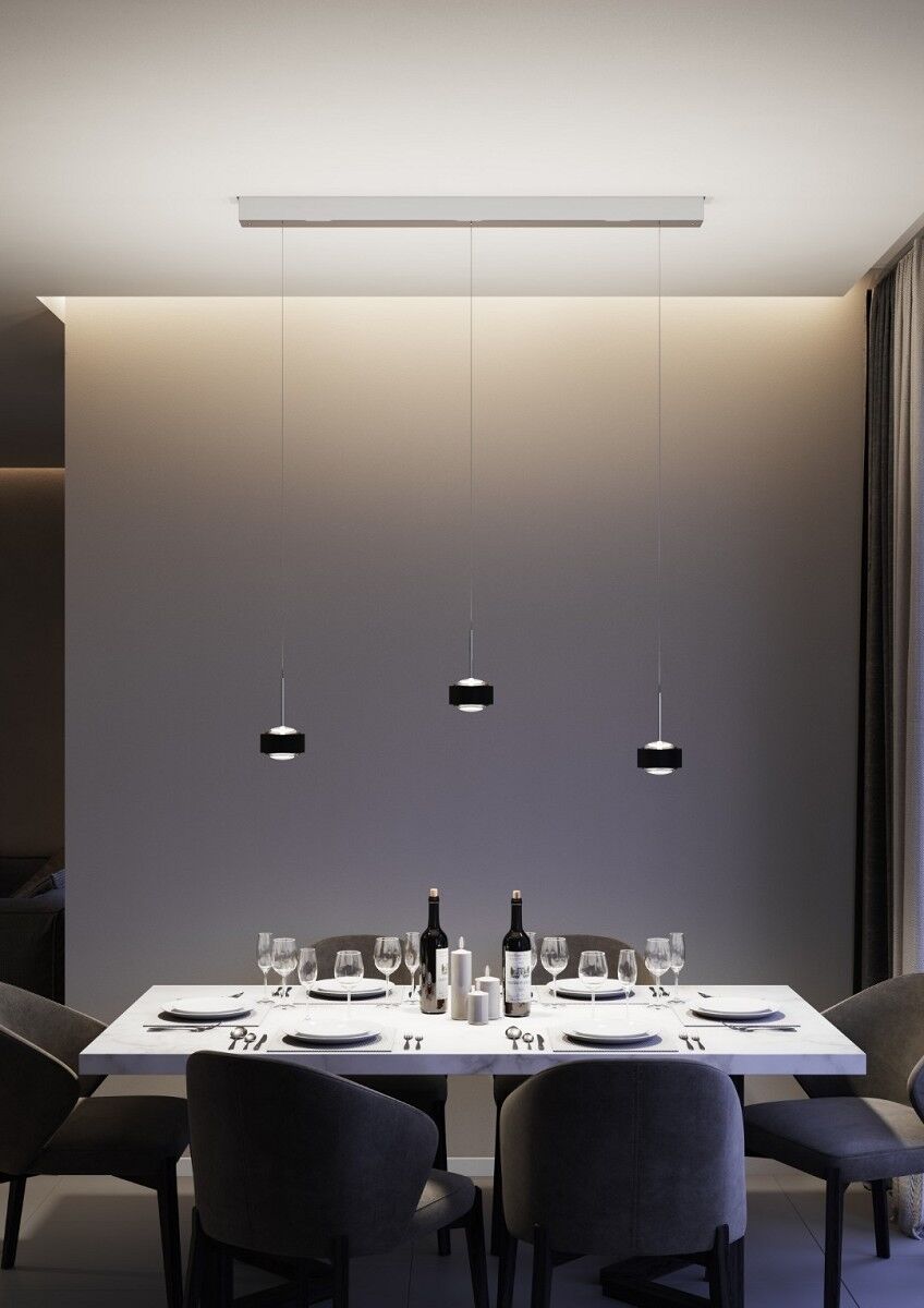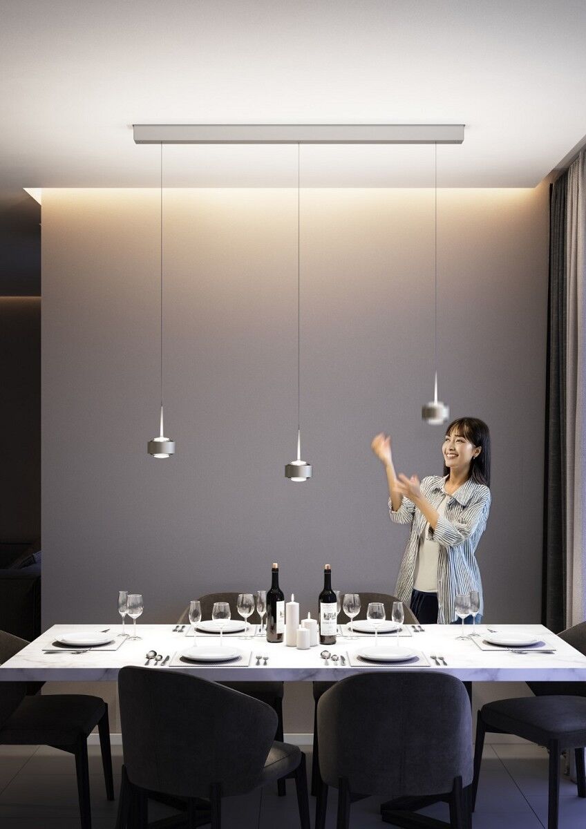 Die PUK! PRO 120 MOTION III setzt mit drei großzügigen Leuchtenköpfen neue Maßstäbe in der Pendelbeleuchtung. Sie bietet maximale Flexibilität und eignet sich perfekt für große Tische, offene Wohnbereiche oder Konferenzräume. Ihr klares, modernes Design fügt sich nahtlos in jede Umgebung ein. Die höhenverstellbaren Leuchtenköpfe ermöglichen eine gezielte Lichtsteuerung. Das „Plug & Click“-System sorgt für eine mühelose Installation. Optional ist die Leuchte mit Dim-to-Warm-Funktion oder Smart-Steuerung erhältlich, um das Licht individuell anzupassen.